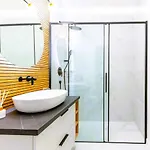 För ökad komfort erbjuds en duschkabin och en separat toalett i lägenheten. Hårtorkar, badlakan och handdukar finns också tillgängliga.